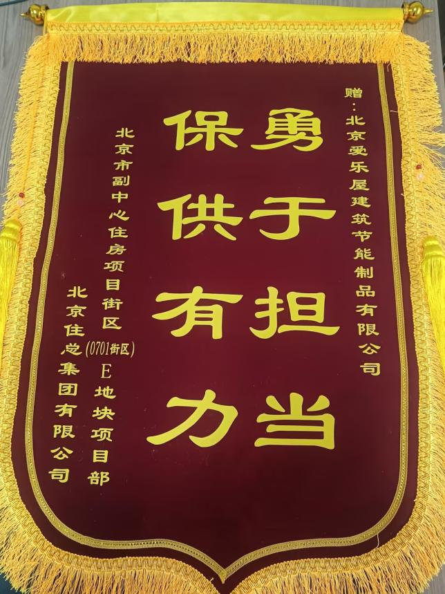 近日北京愛樂屋公司“住保中心0701街區(qū)項目部”獲贈“北京住總集團有限責任公司”送來的一面印有“保供有力 勇于擔當”的錦旗。鑒于我司在0701街區(qū)項目中充分發(fā)揮勇于擔當?shù)木?,甲方對我司?yōu)質(zhì)、高效的服務表示高度的認同。錦旗上的寥寥數(shù)語,背后是沉甸甸的力量,它承載著榮譽,更寫滿了責任;它傳遞了謝意,更傾注了期盼。每一個鏗鏘有力的文字背后,都凝結(jié)著愛樂屋整體團隊的辛勤付出!