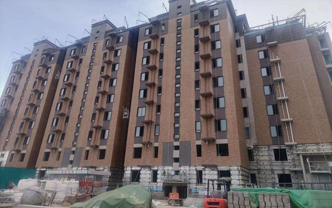 住保中心項目建設規(guī)劃住宅18棟樓、商業(yè)1棟、幼兒園1棟,外窗約1.6萬平米,窗套約8000平米。自2023年4月17日我方進入施工現(xiàn)場進行前期接洽工作,僅用“7天”高效高質(zhì)量完成兩個樣板間的安裝并通過監(jiān)理單位驗收。4月24日第一批次主框到場,25日完成兩棟樓主框安裝。在工期緊張、質(zhì)量要求高、人員緊張的情況下,項目部經(jīng)過18天夜以繼日連續(xù)奮戰(zhàn),多方調(diào)配和施工人員組織截止5月29日24時,10棟樓主框、6棟樓窗套、玻璃安裝完成,順利達成第一施工節(jié)點目標,項目整個施工過程充滿艱難與挑戰(zhàn)。