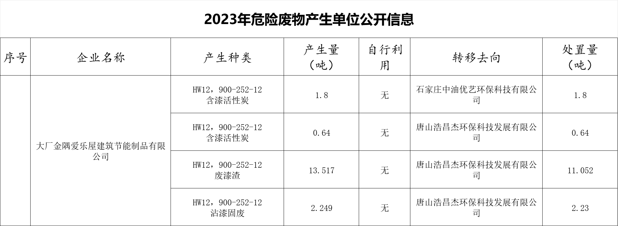 2023年危險廢物生產(chǎn)單位公開信息